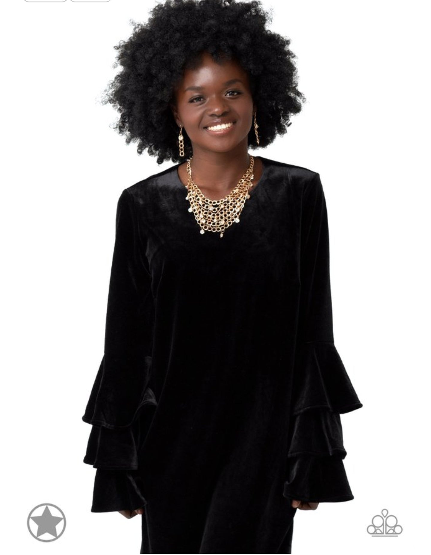 A collar of layered interlocking gold chain provides the canvas for gorgeous clear rhinestones to sway delicately. Features an adjustable clasp closure.
