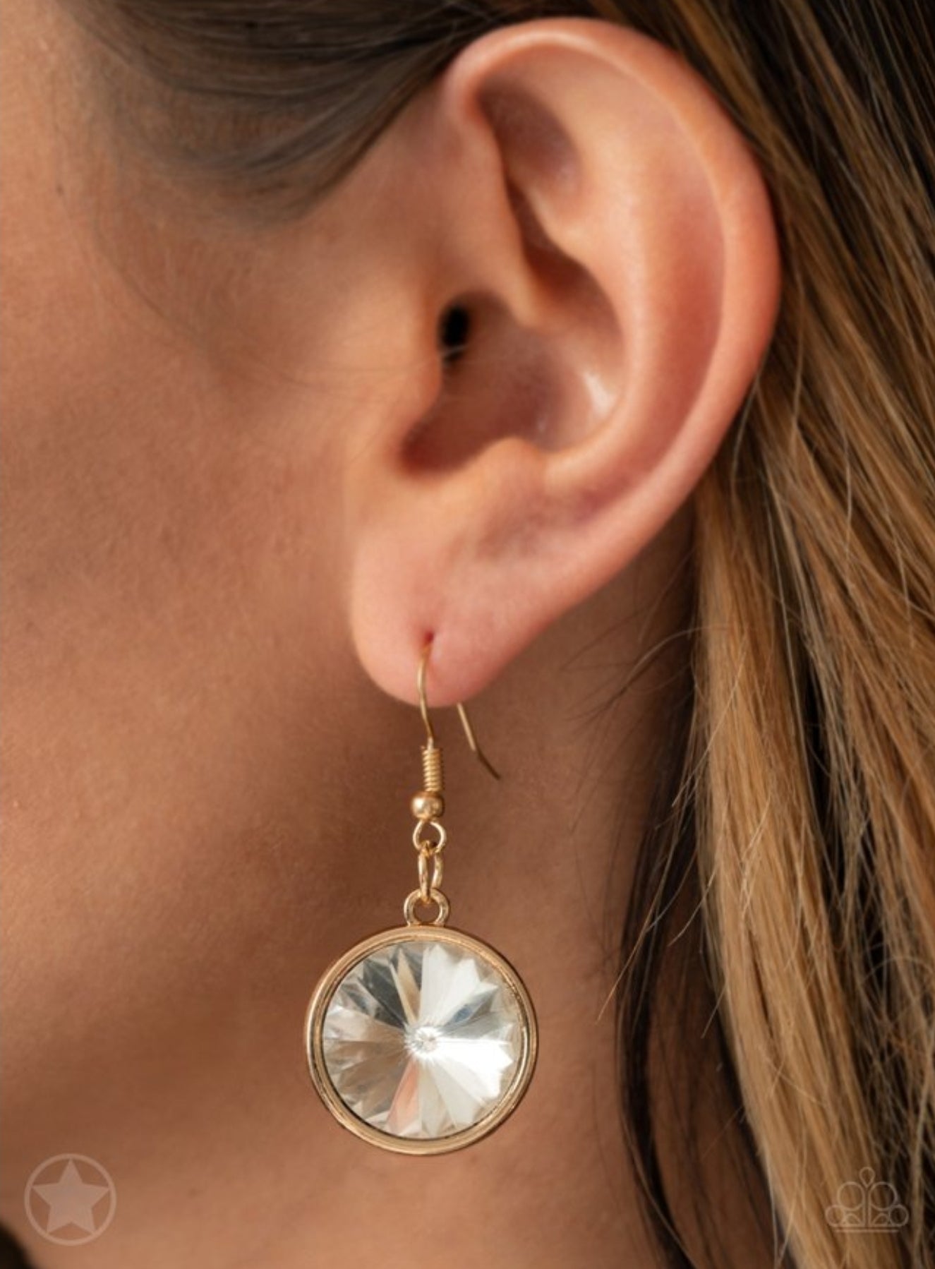 Three dramatically oversized rhinestones are nestled into three textured gold fittings that are connected by oval gold rings, creating a brilliant statement piece. Features an adjustable clasp closure.